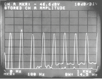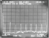 音频电缆中的噪声经过功率放大器放大50dB,由频谱分析仪分析。