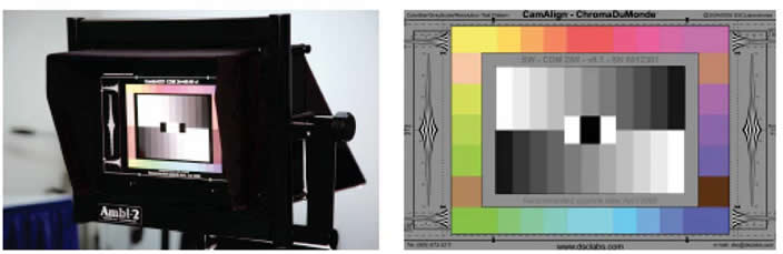 对摄像机作精确的评测需要使用一种精密的测试卡,例如 Ambi Combi (背光,如图8a) 或DSC 实验室的CamAlign 测试图案 (前光,图8b)。它们是一些独特的测试图案,能 够提供有意义的测试信号,使得摄像机的调整和图像控 制更为简捷方便。可以利用这些图卡中包含的灰度级和 彩色台阶特性来调整摄像机的各种设置。