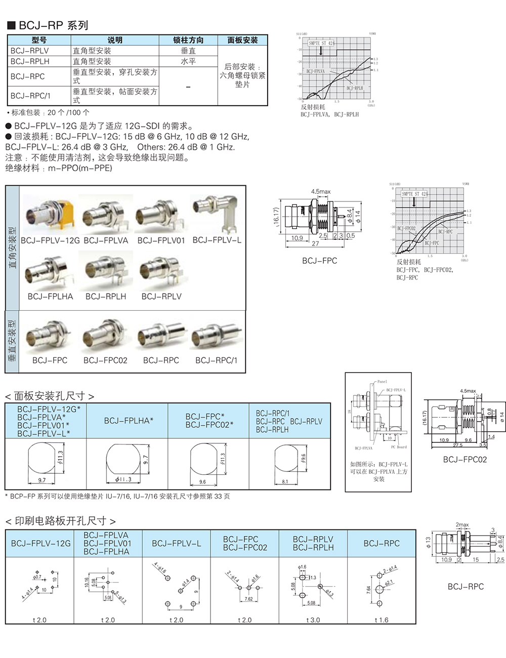 75Ω 印刷线路板安装型插座(螺母按照型) BCJ-RP系列